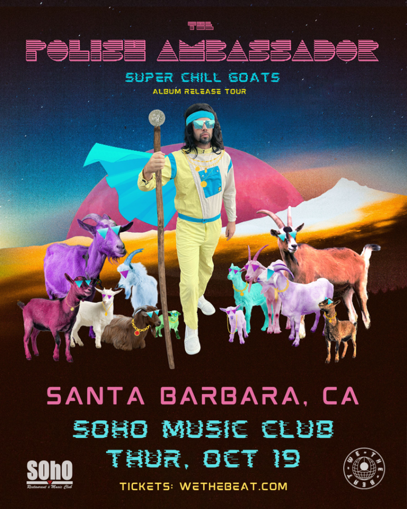 Things became quite uncertain in 2020, so David Sugalski aka The Polish Ambassador did what he does best, he made a plan. The Ambassador added 7 milking goats to his homestead in Northern California. Little did he know the creatures would inspire some of TPA’s best work, plus the goats were well…super chill… hence the namesake of the album and 2023 Super Chill Goats National Tour.